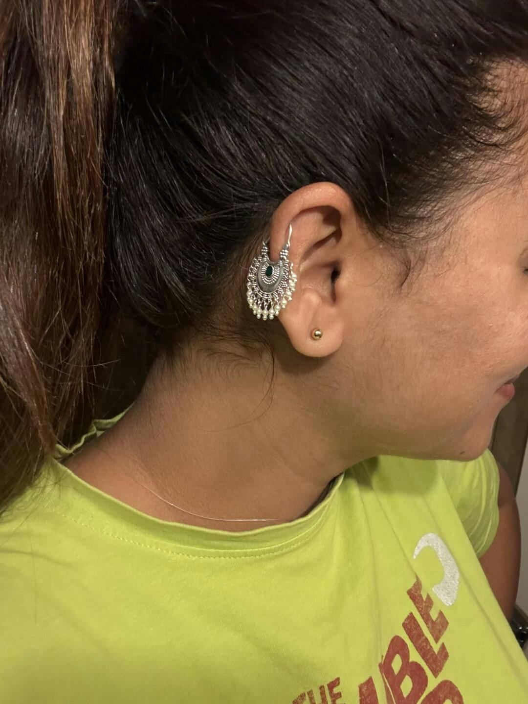 Chandbali Silver Bugadi Pierced (Single, Blue & Green) By Moha
