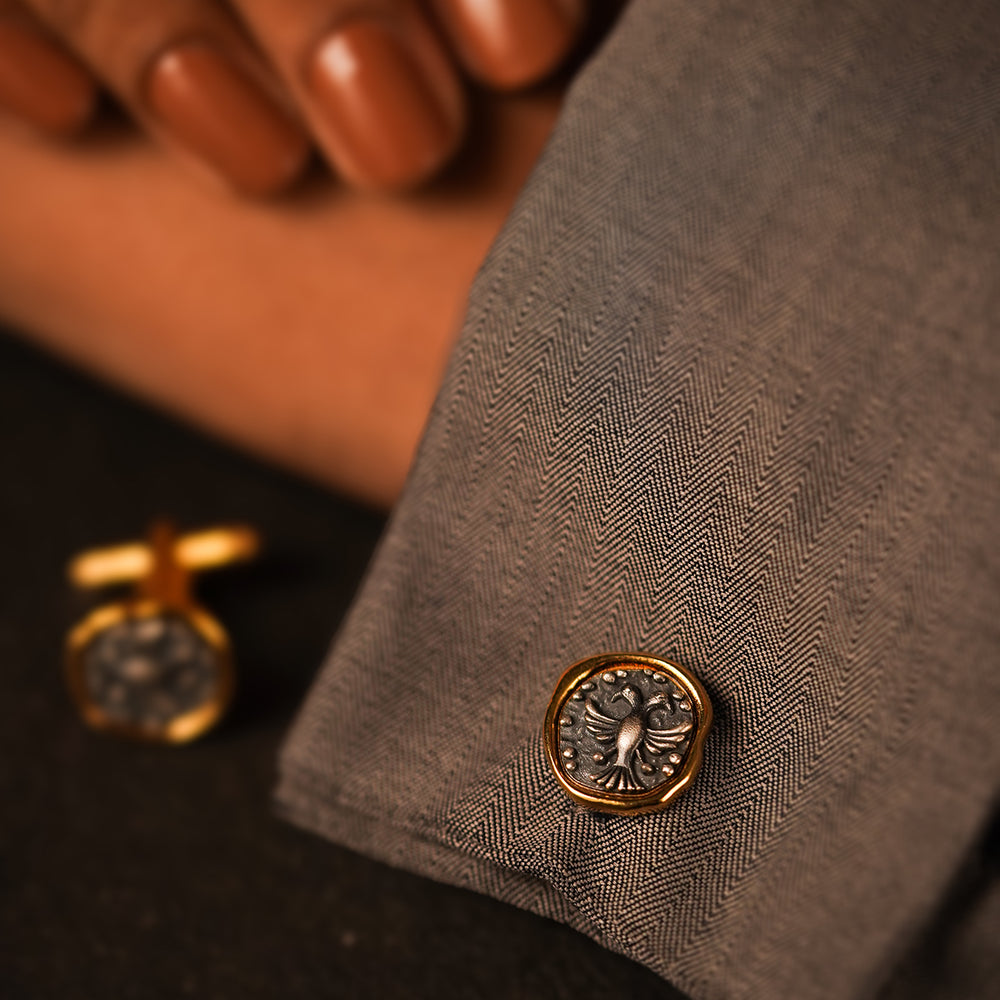 Pair these Gandaberunda silver cufflinks with a classic suit and tie for a sophisticated look. It can be a perfect gift for any occasion.