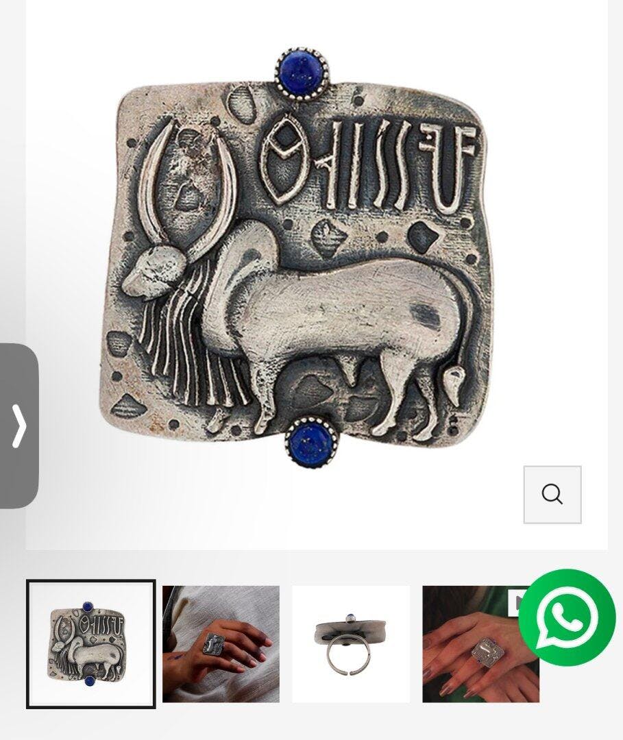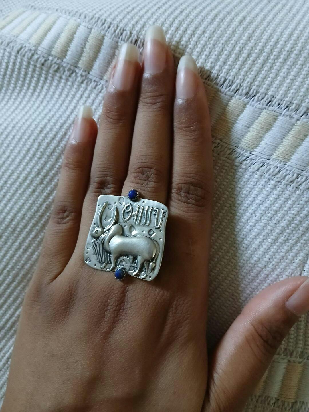 harappa vrishabh bull seal silver finger ring lapiz lazuli