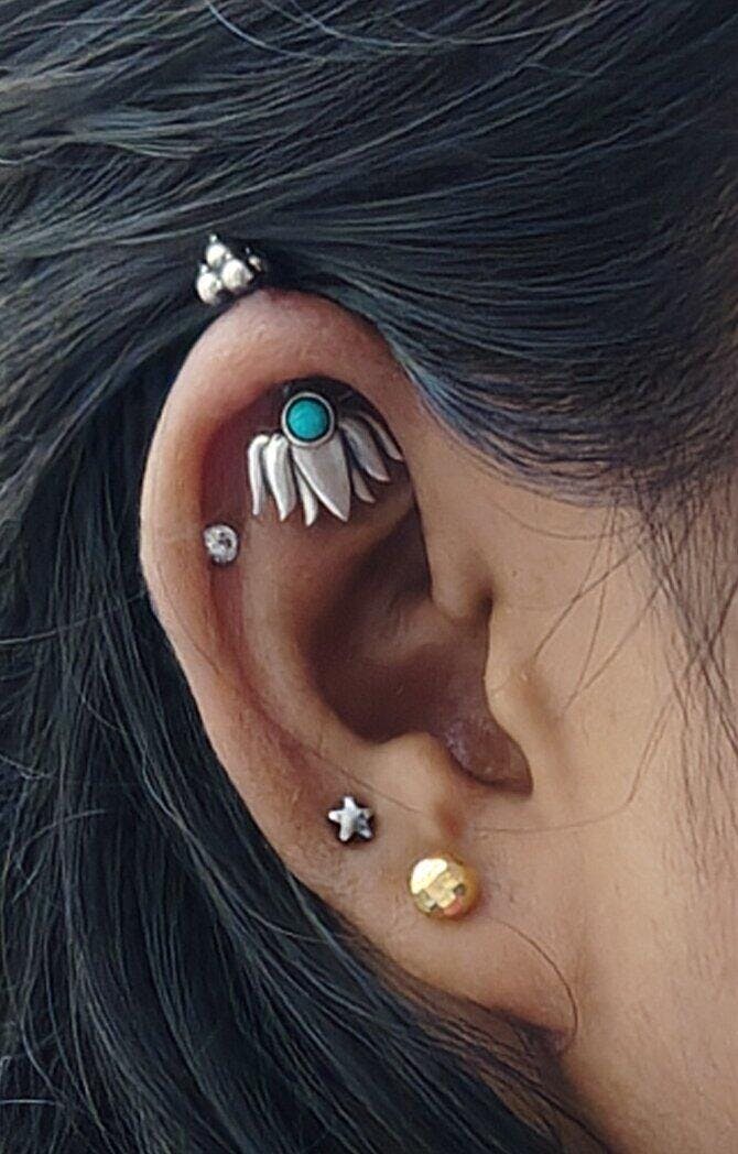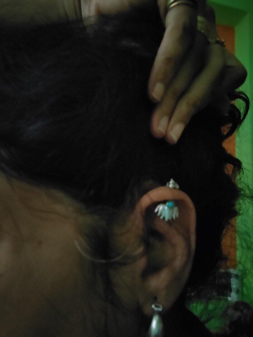 The Nilofer "नीलोफर" Silver Bugadi, named after the enchanting blue lotus (Nilofer), captures the essence of serenity and spiritual awakening. This captivating piece features a mesmerizing turquoise stone, mirroring the tranquil hues of the lotus flower. Turquoise, complements the symbolic meaning and color of 'Nilofer' beautifully.
