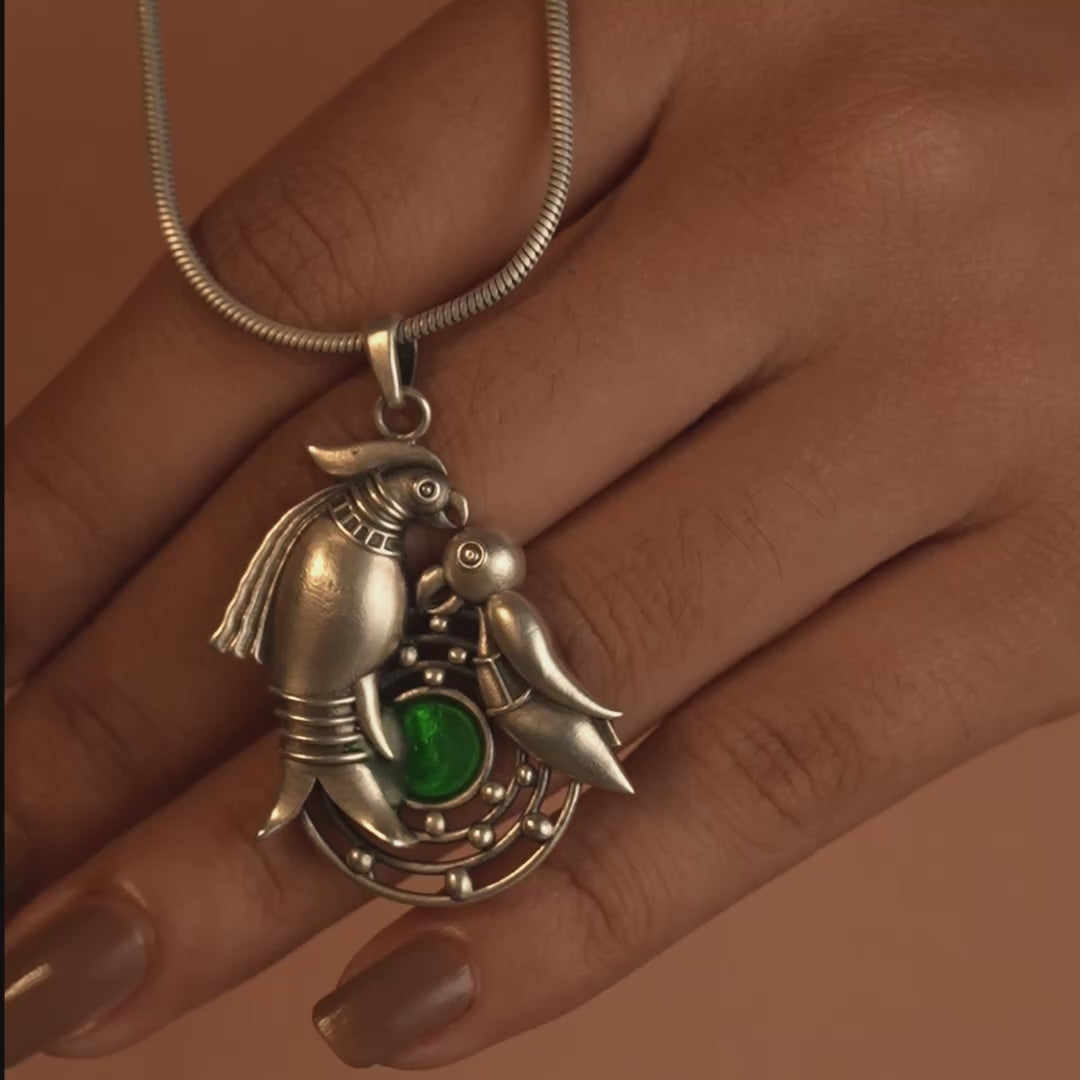 Handcrafted in 92.5 pure silver these earrings captures the timeless bond between a mother and daughter through the delicate language of Mandana art. Two birds, a symbol of nurturing love, protection, and companionship.