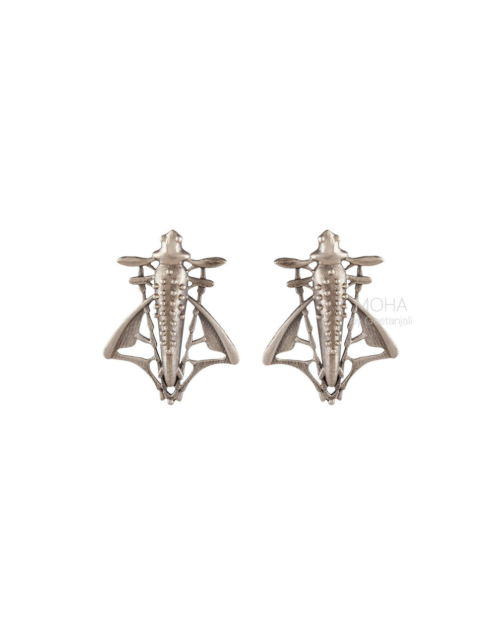 Moha’s grasshopper motif is a tribute to this hardworking insect. With careful observation of the grasshopper’s body structure and with subtle modifications and additions which add to the resulting design, Moha has created stunning silver stud earrings. These Sharaba silver stud earrings are perfect for the lover of eccentric jewellery.