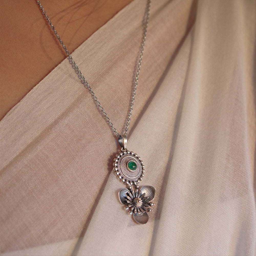 Introducing Silver earring from our enchanting "Gulistaan" series, where elegance meets nature's timeless beauty. Crafted with utmost precision and adorned with three delicate petals, this stunning silver chain pendant is a true ode to the grace and charm of blooming flowers.